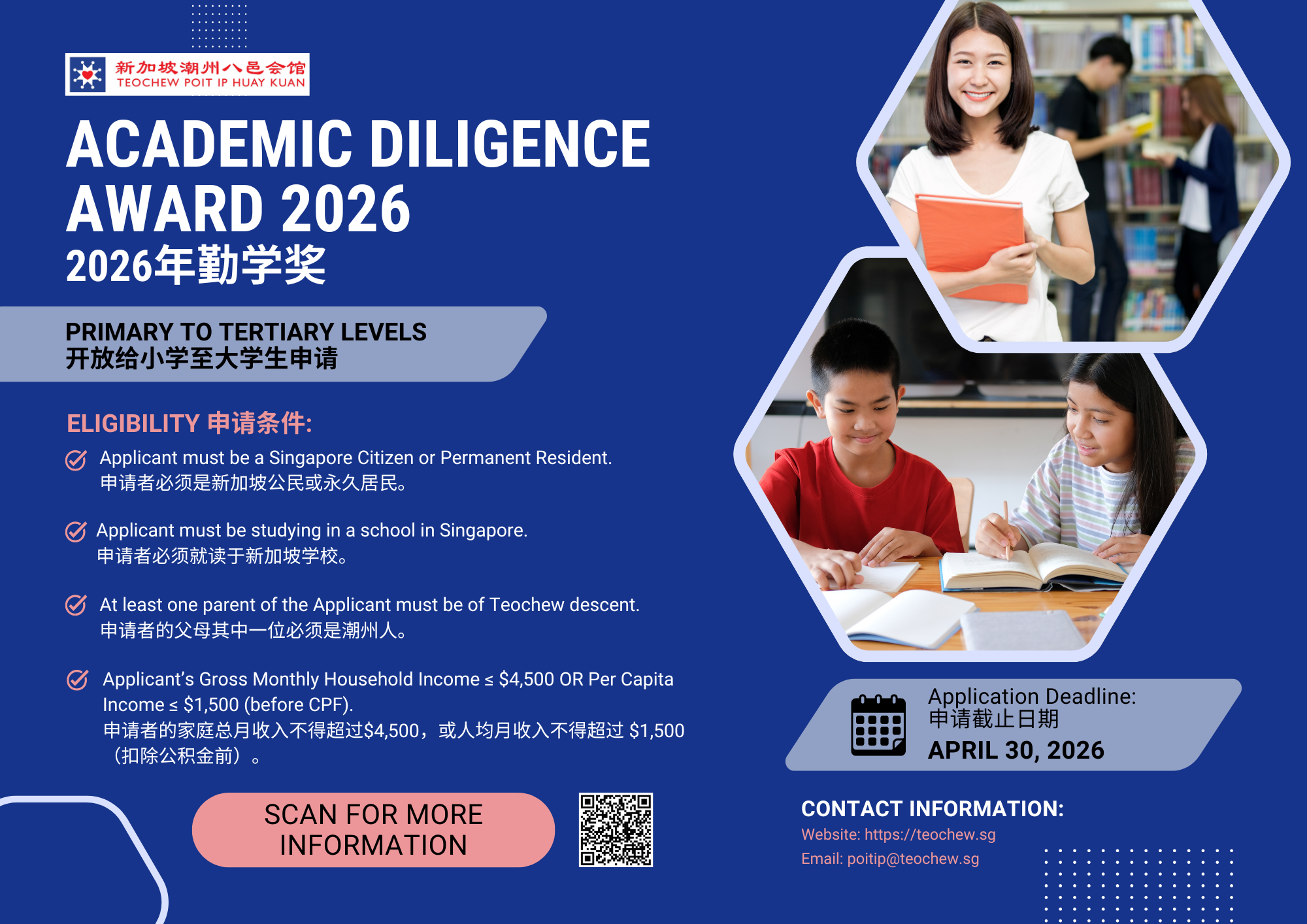 Teochew Poit Ip Huay Kuan Academic Diligence Award 2026 Now Open for Applications