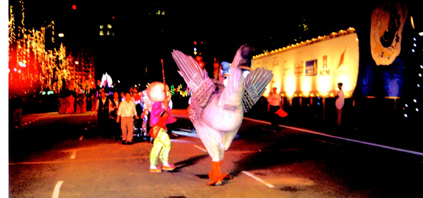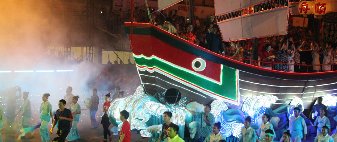 这次游行采用了红头船,大锣鼓和过番客等极具潮州特色的表演元素,加上由家喻户晓的潮州节小调改编成的史诗般音乐烘托,给观众留下了难以磨灭的印象。表演不仅在滨海湾大放异彩,在接下来3 月份的连续四个周末,红头船还摇身变成大估船驶入了乌节路和多个邻里社区,与民同欢。